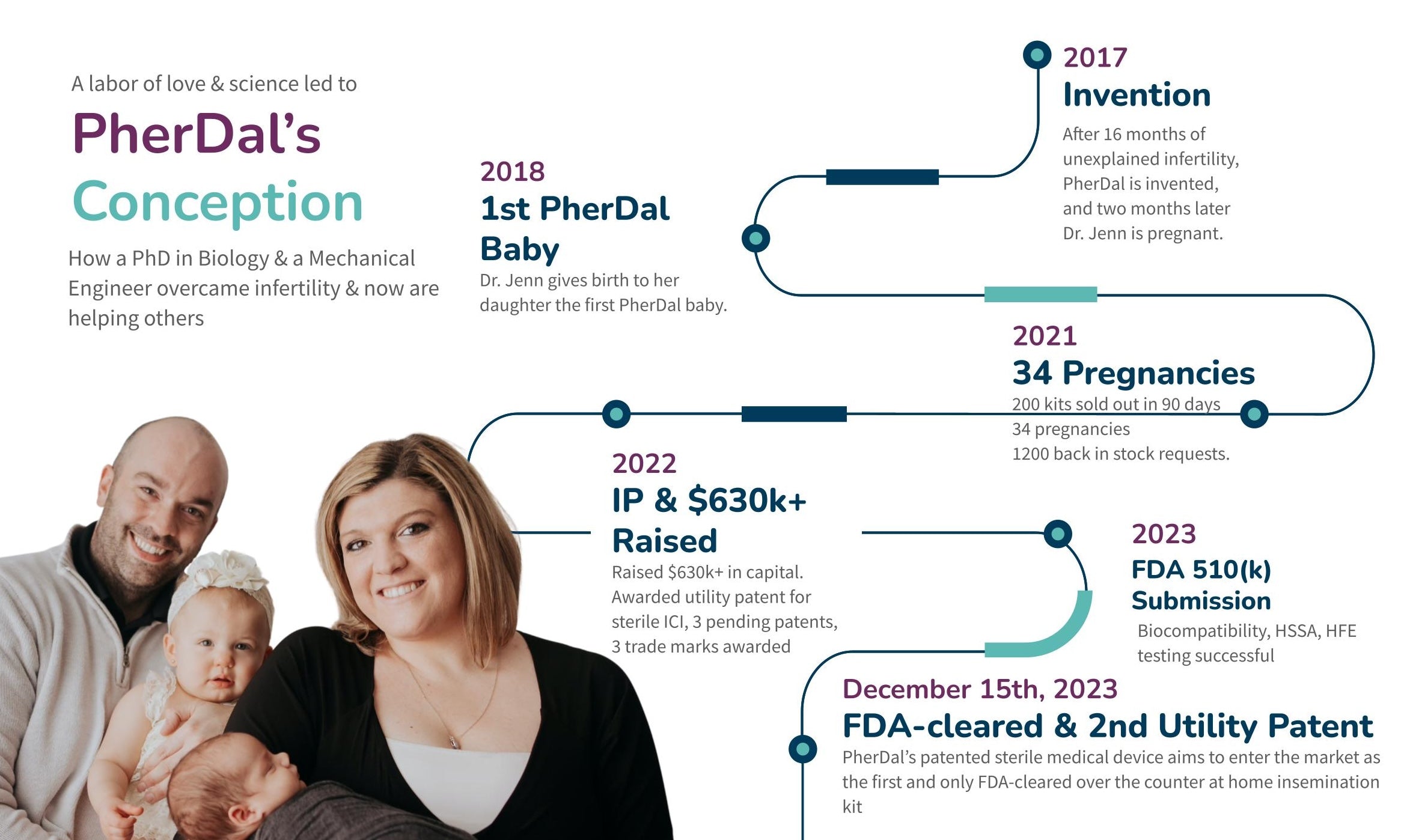 433 PherDal Family members raised over $630,000 every last penny went to our clinical testing and our safety testing. In December of 2023 we made history together as the first and only FDA cleared, sterile, at home insemination kit.